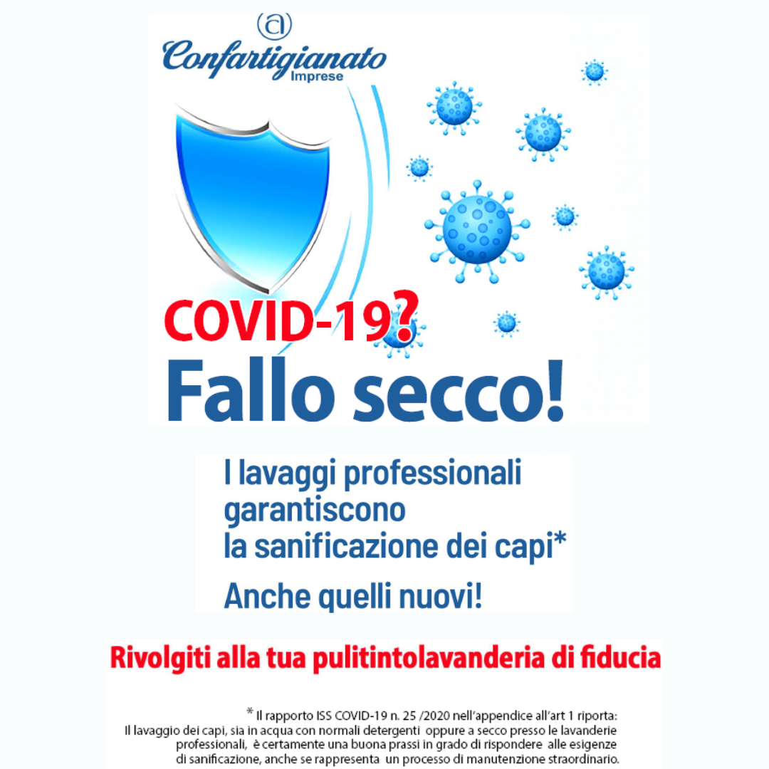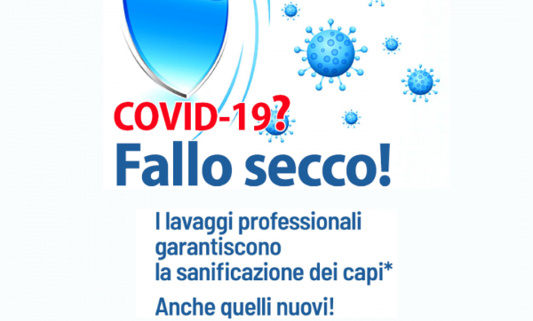 L' elevata efficacia dei trattamenti a cui vengono sottoposti i capi nelle tintorie tradizionali si avvicina molto alla sanificazione pertanto, anche per questa ragione il Consiglio Direttivo di Confartigianato Pulitintolavanderie ha deliberato di mettere a fattor comune per tutti i territori e le imprese associate la campagna di comunicazione “FALLO SECCO!”, un invito ad affidarsi alla sicurezza del trattamento a secco dei capi.