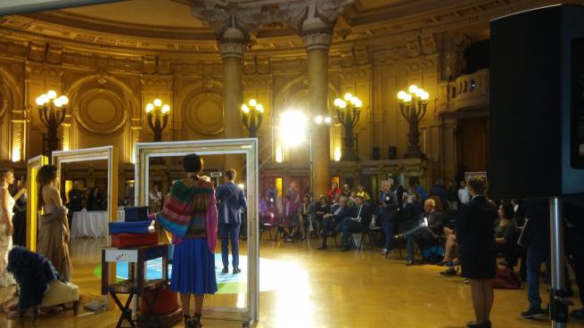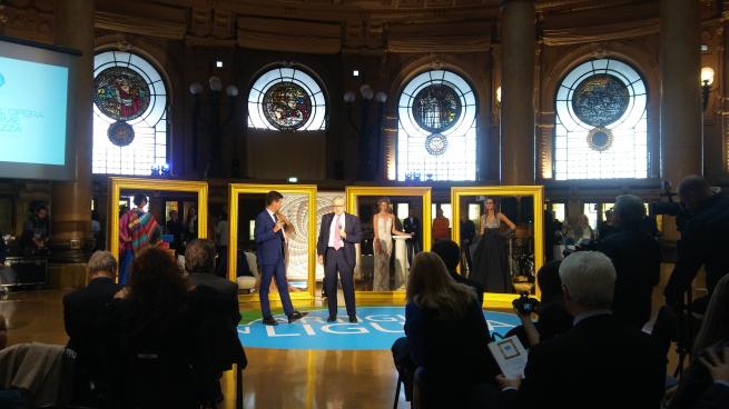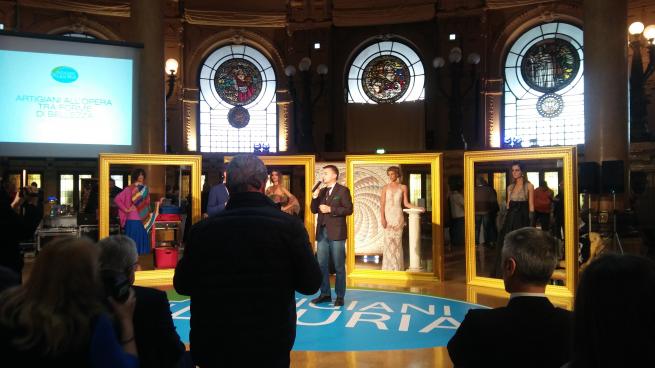 Artigiani all’opera tra forme di bellezza è l’evento organizzato dalla Regione Liguria con la Commissione Regionale per l’Artigianato e in collaborazione con il Sistema camerale ligure e le Associazioni di categoria artigiane regionali, all’interno del quale sono state riprodotte al centro della circolarità della sala delle Grida quattro cornici in oro con icone - modelle, che hanno racchiuso oggetti e creazioni di moda, pietra, pelle, tappezzeria in stoffa simbolo dei nuovi settori, accompagnati dalla riproduzione dei filmati esemplificativi di ogni lavorazione.